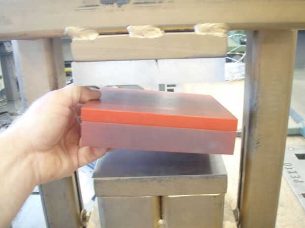 Configurar la almohadilla de goma rojo 1 pulgada en la chapa.