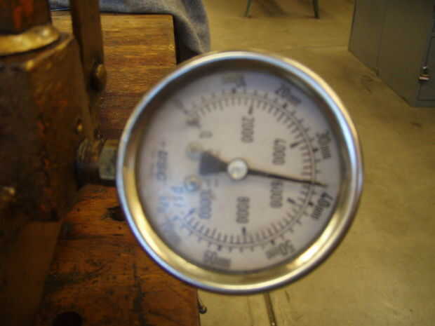 Asegúrese de que la válvula gire a la derecha hasta el cierre. Bomba hasta que el manómetro Lee 6.000 libras de presión, o hasta que llega con fuerza a la bomba.