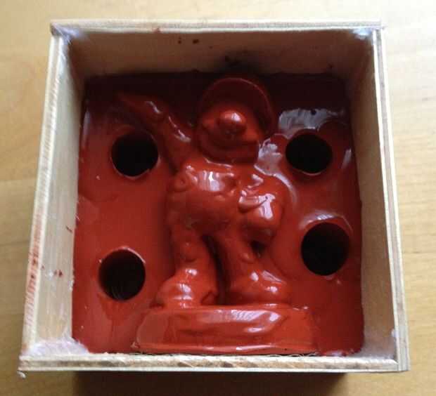 • Baterías AA de 4 lugar en la primera capa del caucho del silicio y vierta el caucho del silicio en la caja de madera hasta una mitad de la Mario Amiibo es cubierto con él (cuando cerca de la mitad de la base está cubierta de goma debería ser suficiente)