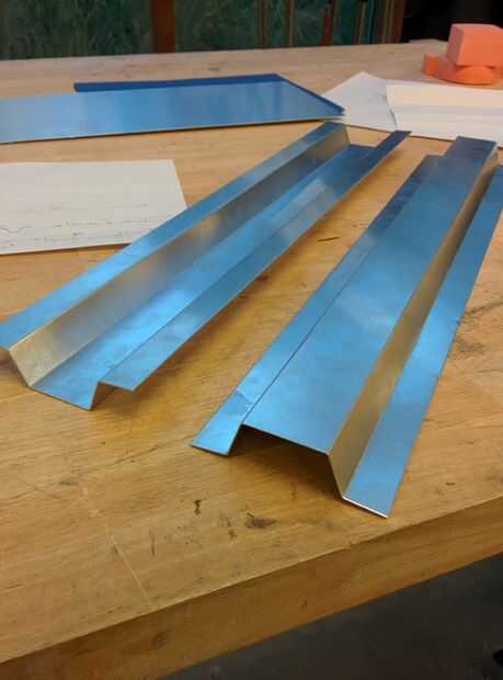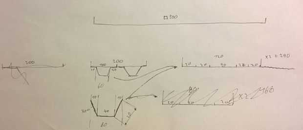 Siguiente es calcular la superficie que usted necesita doblar y alinear los perfiles bajo su capa superior. Aspiro para un ángulo de 60°. En caso de la curva que ahora, no es que un gran problema. Tenga en cuenta! Doblar la hoja a un estado anterior se debilitará la hoja, resultando en una posible falla del material. Es mejor doblar ambos perfiles a 70° que tratar de volver.