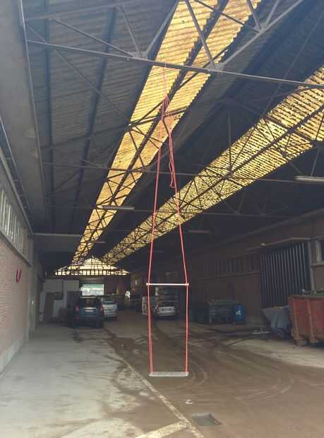 Después se las arregló para conseguir las cuerdas establecidas, sólo colgar el palo de la suspensión en los 2 circuitos recién creados. Y cuelgue el panel de la palanca de suspensión.