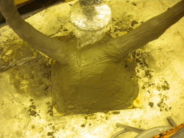 La siguiente capa debe ser de hormigón liso. Después de un poco de investigación, se me ocurrió esta receta: 1 parte de cemento portland 1 parte harina de sílice (en peso). Mezclar completamente seca (no olvide llevar una máscara!) y luego añadir agua como antes, sólo para que el cemento es realizable.
