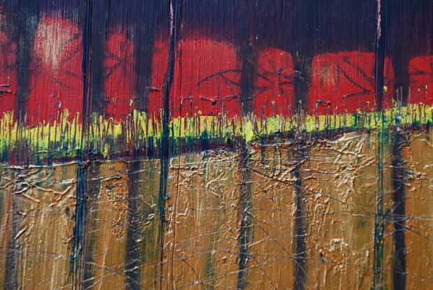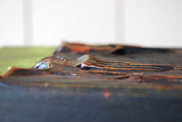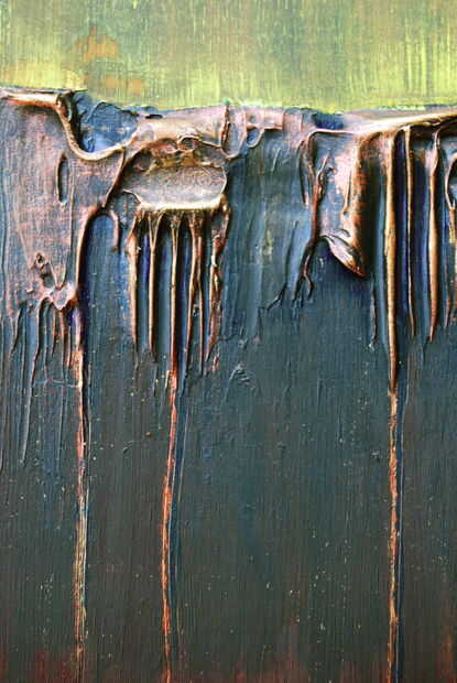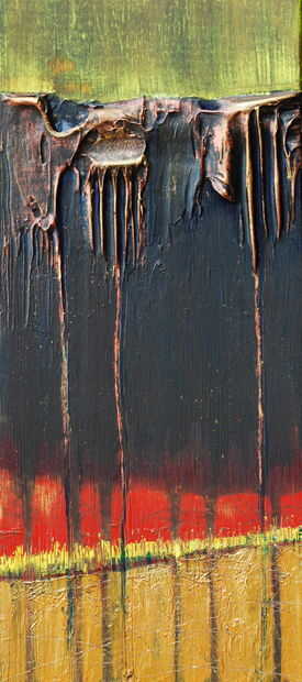 aunque me encanta hacer cualquier cosa de cualquier otra cosa, la pintura es dónde realmente puedo expresarme. Esta nueva pieza fue creada para un herrería metal amigo mío; con su trabajo como una fuente de inspiración, incorpora capas de pinturas metálicas y trató de jugar con un montón de diferentes texturas en la obra. Este trabajo se basa en mezclas únicas de metalsmith de metales, texturas, técnicas y materiales. También mantenía la pintura un poco más pequeñas que normalmente trabajaría y con lados más gruesos para ver si podía cambiar la pintura de un avión de más de 2-D en un objeto. La textura de la relevación dramática y reflexivo oro y cobre pinturas realmente hacen cosas cool de luz diferente.