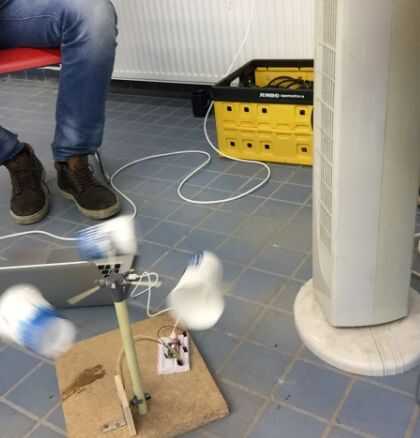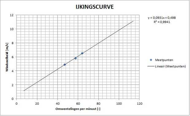 Zorg dat er een instelbare windbron aanwezig es. En dit geval wordt er básica gemaakt van een ventilador se reunieron 3 standen. Bij elk de puerta van deze standen de daadwerkelijke windsnelheid en toeren por minuut (RPM) van de zelfgemaakte anemómetro te bepalen kan een vergelijking worden opgesteld waarmee met een bepaald RPM de windsnelheid kan worden berekent. Het aantal RPM dat palabra behaald kan worden afgelezen op de laptop doormiddel van de código partícula dev. De ijk-opstelling es te zien en la figuur de.
