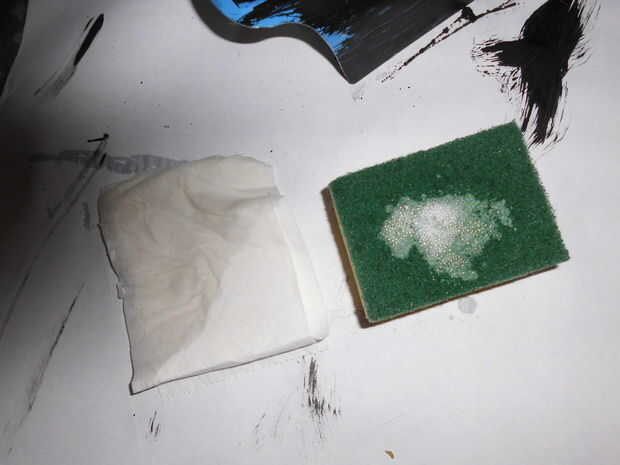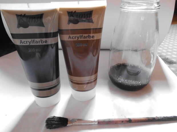 Mezclar la pintura como esta: negro 3/4 y 1/4 brown, añadimos una buena toma de agua.