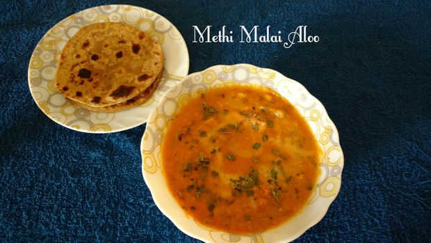 Aloo Methi es un plato delicioso con patatas, hojas de alholva y una combinación de especias.