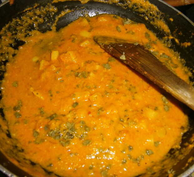 Aloo Gobi es un plato de Punjabi vegano muy popular. Casi siempre se incluye en cada menú del restaurante indio. He añadido pimiento rojo, naranja y verde, así como nueces de la India a la receta tradicional para que sea más colorida y nutritiva. Va