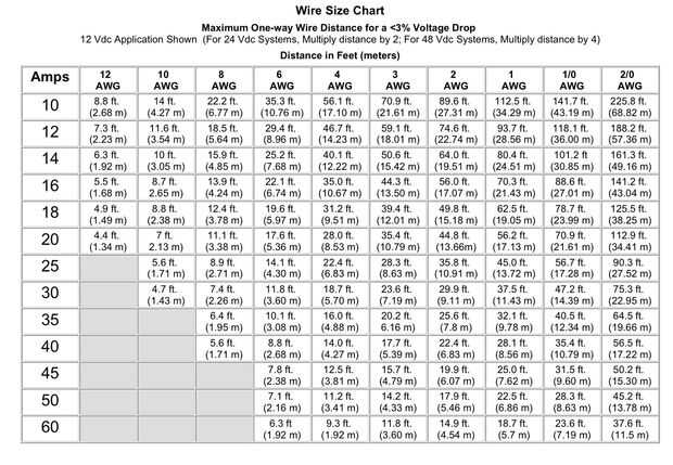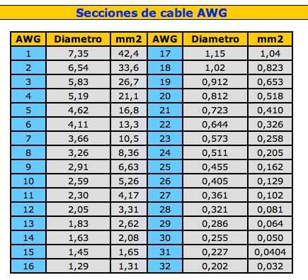 El estándar técnico Universal recomienda algunos diámetros de cable y el voltaje cae.