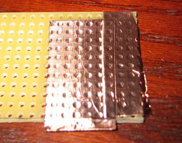 Pegar una capa de adhesivo hoja de cobre al lado de la Junta que se llevará a los componentes. Si la hoja no es lo suficientemente amplia como para cubrir todo el tablero, entonces usted necesitará utilizar varias tiras de papel y se les superponen un poco. Asegúrese de que los bordes de las tiras de papel de la mentira
