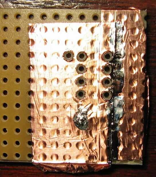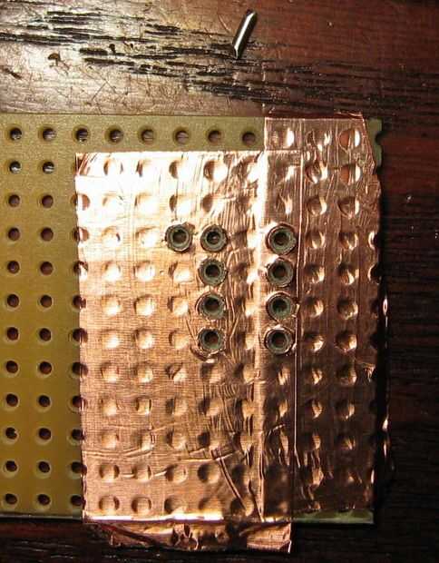 Si ha utilizado varias tiras de lámina de cobre, entonces después todos vias han sido soldadas en su lugar, de la soldadura toda la longitud de la costura entre la superposición de tiras de papel.