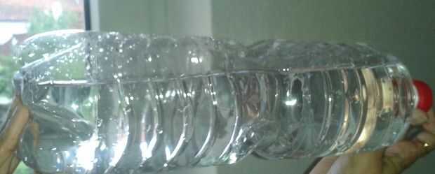 2) limpiar la botella, llene la botella 3/4 de agua y agitar bien y ahora rellenar completamente botellas de plástico PET y cerrar el tapón firmemente.