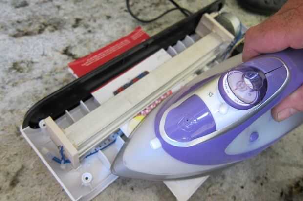 Por lo tanto, terminan su plancha a full, no vapor y obtener su plastificadora precalentado. Yo desmonte mi laminadora - hago esto porque puedo manejar cualquier mermeladas más fácil y más crucial, puedo conseguir mi hierro más cerca a los rodillos.