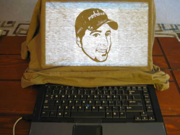 • En un apuro, incluso he estirado una camiseta en mi monitor de la computadora y trazada directamente de la pantalla. Si intenta esto, entonces primero cubrir el monitor en envoltura plástica de lo contrario puede ser sangrado de marcador-aunque a manchar la pantalla del monitor.