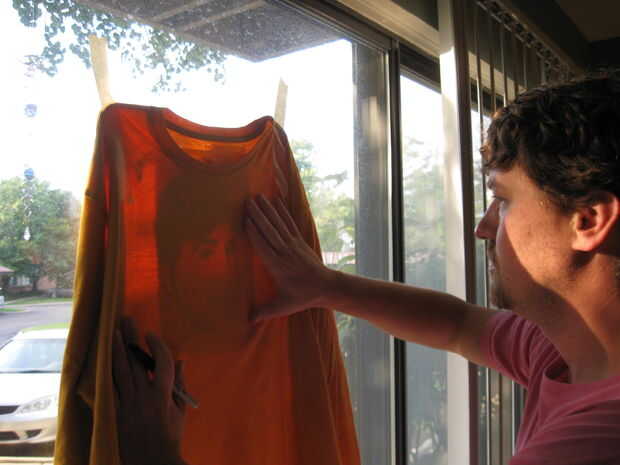 • Si no tienes una caja de búsqueda, entonces usted puede fácilmente de la cinta su imagen y la camisa a una ventana exterior. En un día soleado, puede ver fácilmente el diseño a través de camisas color ligeros para seguimiento
