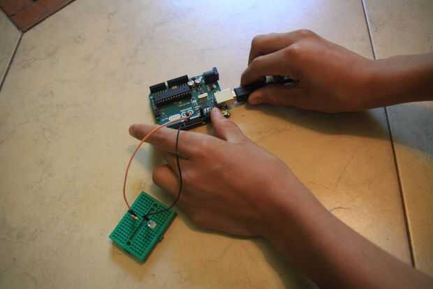 Ahora conectar el Arduino al ordenador. La fuerza de voluntad de la Junta en el, pero el LED no enciende up...not todavía.