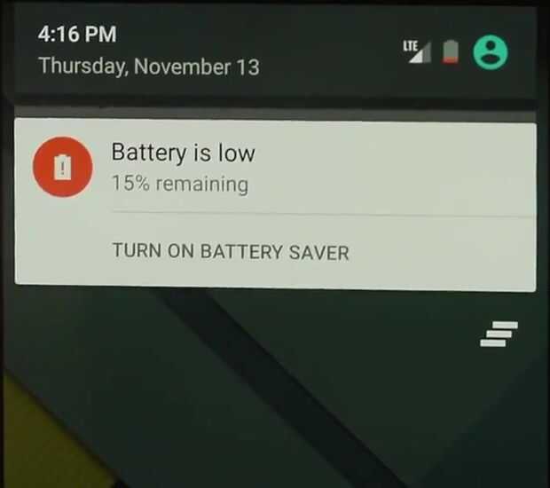 Generalmente en Android con el modo de ahorro de batería se apaga pero cuando la batería bajando a 15%, una notificación será demostrada para activar el modo de ahorro de batería.
