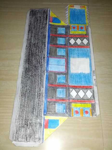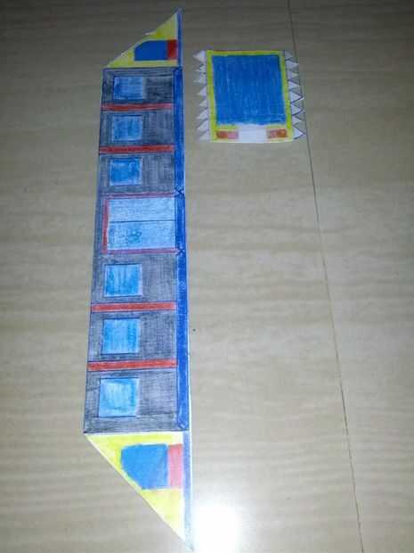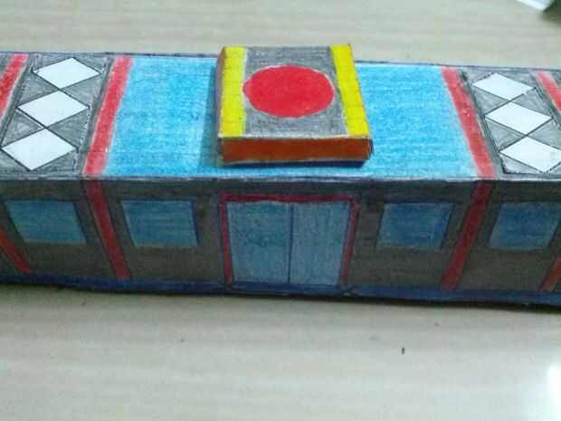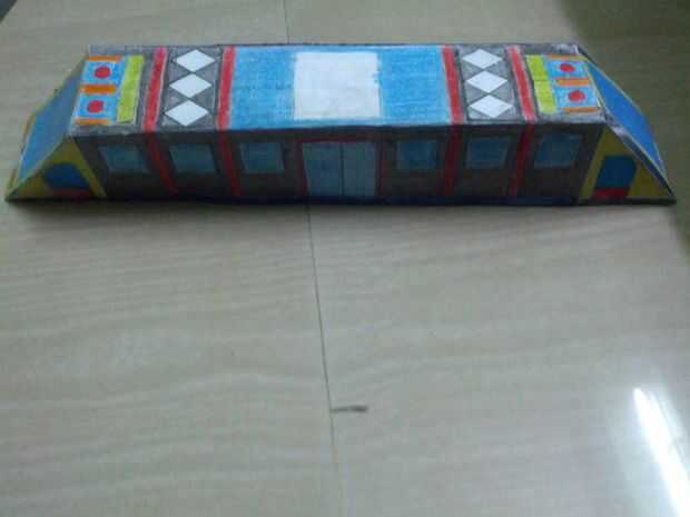 Ahora corte tren parte 3... Pegue las pestañas pegamento a los espacios requeridos. U obtener un lugar de objeto de la caja en forma de ese objeto en la superficie en blanco en la superficie superior del tren.