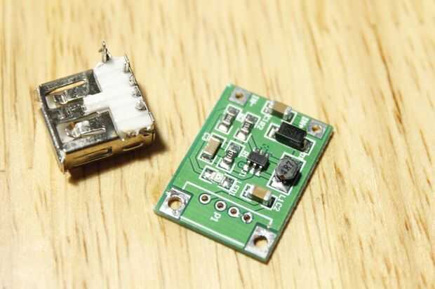 He editado un poco para este módulo más compacto por retirar el puerto para USB y soldar cable a par de la salida (una para el ánodo y el cátodo es otro). Soldar las pilas (o la salida de TP4056) a la entrada de este módulo. Usted verá una luces rojas del LED indican la potencia de entrada y listo.