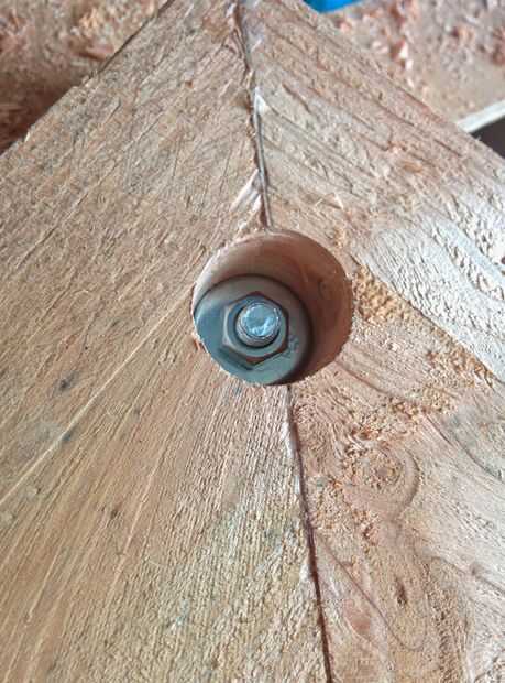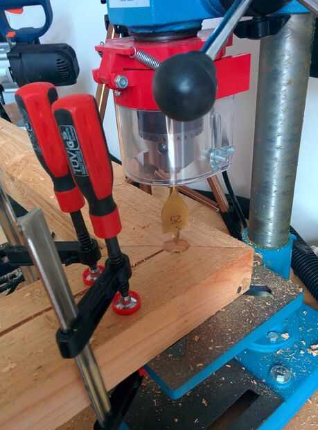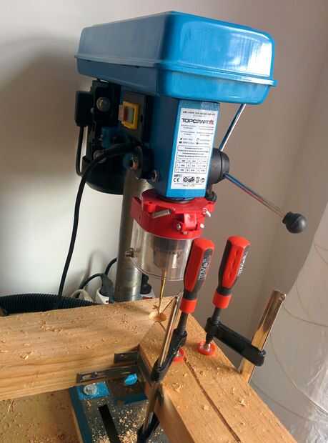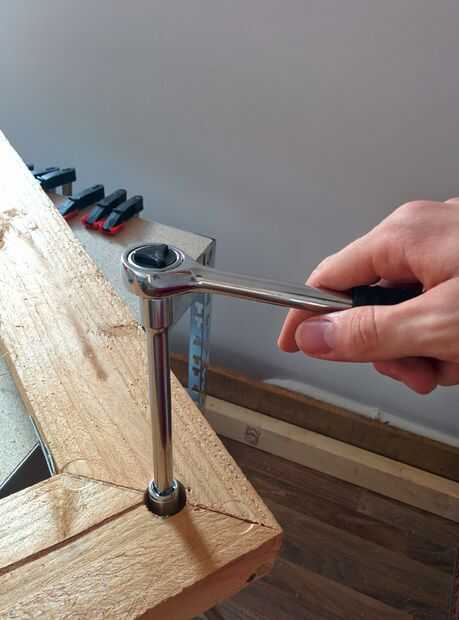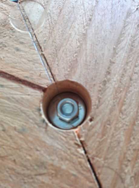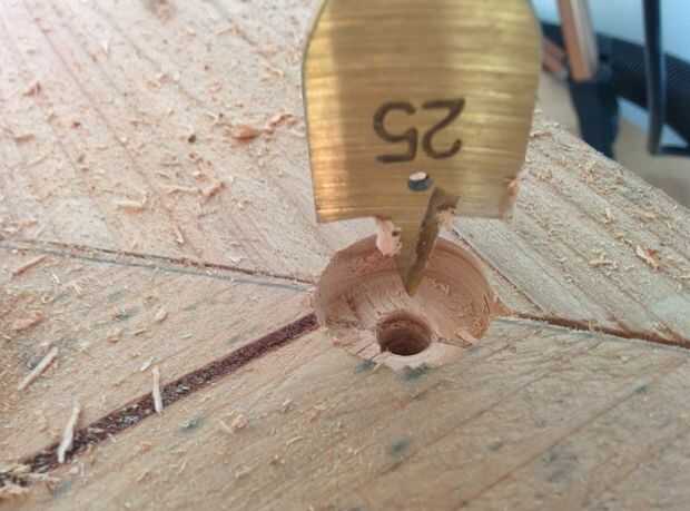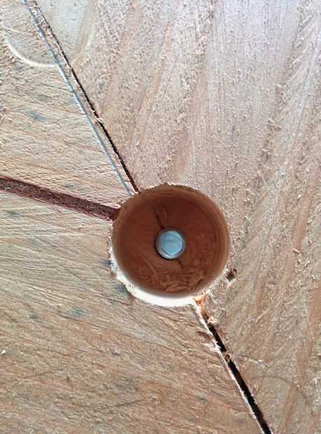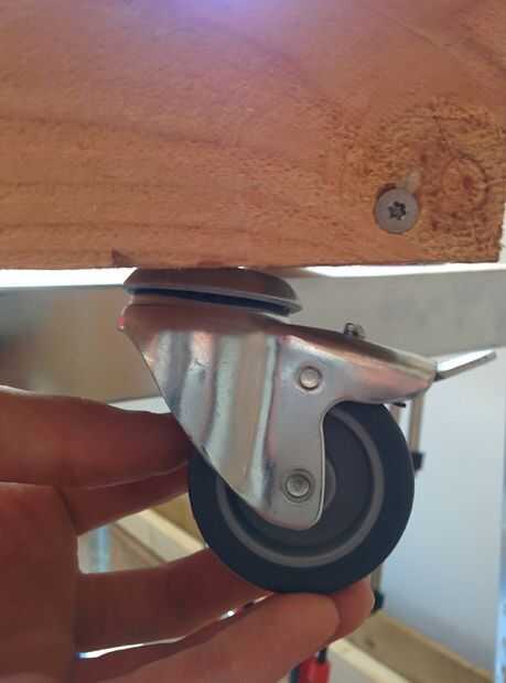 Las ruedas fueron montadas en las esquinas con tornillos. Me perforó un agujero en cada esquina de mi taladro y utiliza un 25 mm plana madera Broca para avellanar la tuerca. Probablemente podría utilizar un taladro de mano para este paso también.
