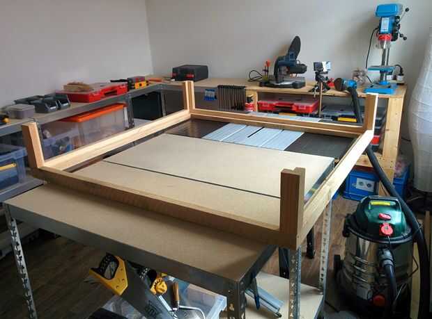 Mi garaje es una pesadilla. Tengo proyectos, acumulando y no espacio de trabajo usable para hacer algo. Decidí construir una mesa de trabajo que podría rodar fuera de la cochera y hacer algunas limpiar mientras tanto. Necesitaba una mesa que tenga su