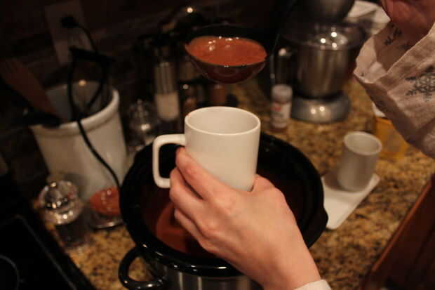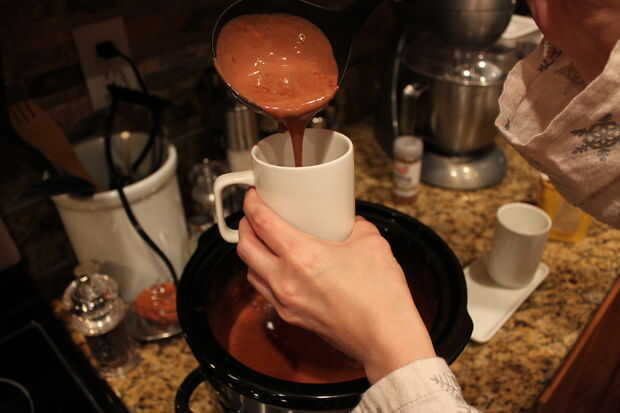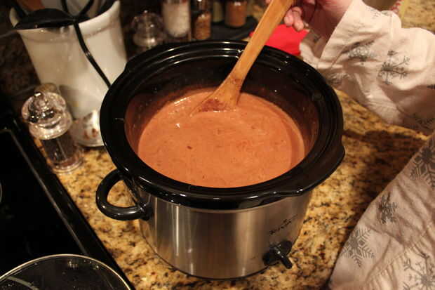 Por lo tanto, me tomó cerca de 2 horas. Ahora el chocolate caliente mexicano será hecho y muy gruesa. Usted siempre puede cocinar más grueso, no ir más allá de 4 horas. Recomiendo usar un cucharón para verter. Ser muy cuidadoso vertiendo ahora, este material es caliente y no me refiero sólo picante caliente!