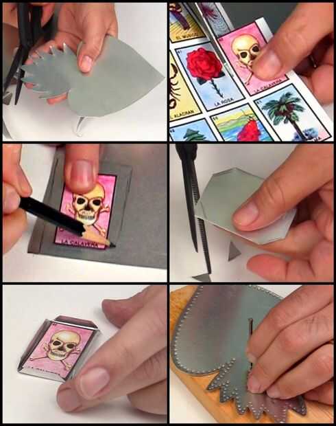Trazar y cortar el patrón en tapajuntas de aluminio con tijeras dentadas (o tijeras de lata)
