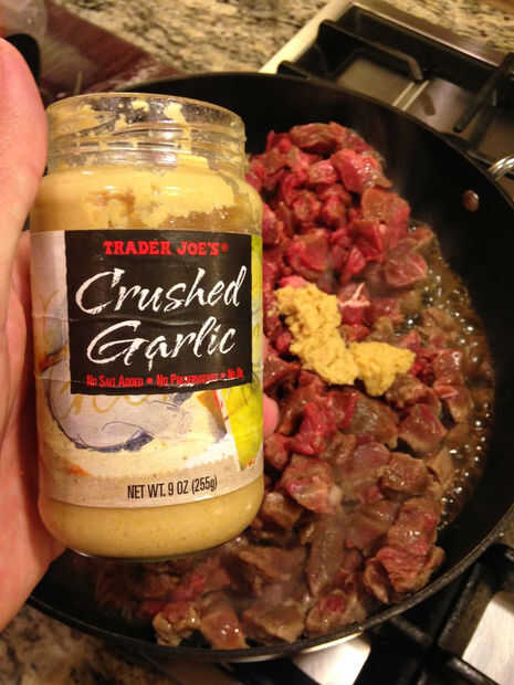 Añadir 1 cucharada de ajo machacado mientras se cocina la carne.