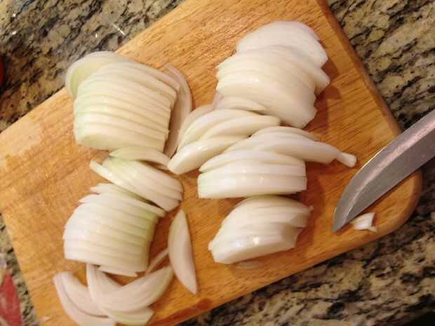 Cortar las cebollas en astillas gruesas larga 1/4.