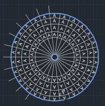 5. Recorte el bebé! Tipo de ajuste y seleccione el outter círculo más y el interior más círculo, presiona enter. Ahora haga clic en todas las líneas de los círculos exteriores e interiores como se muestra a hacer divisiones para a sus segmentos de círculo.