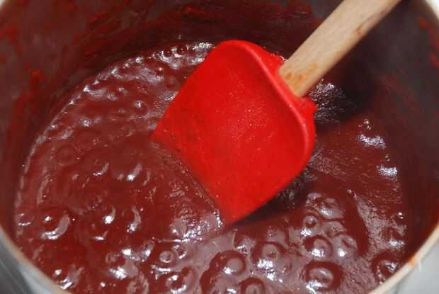 Llevar la salsa a ebullición bajo y cocinar a fuego lento en baja durante 5-8 minutos removiendo cada minuto. Usted querrá tapar la olla para evitar que se salpique. Este paso combina las especias y vuelve la salsa un color más oscuro rico.