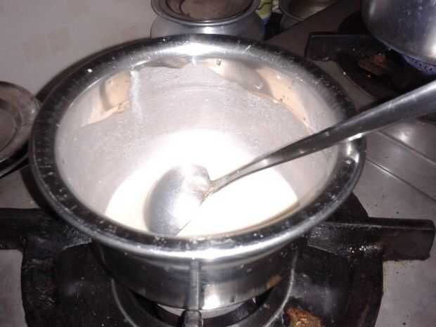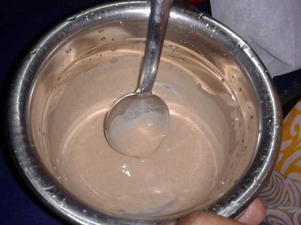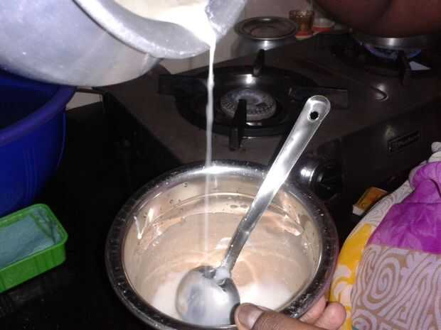 4) luego agregar media taza de leche a la mezcla y hacer como pasta líquida.