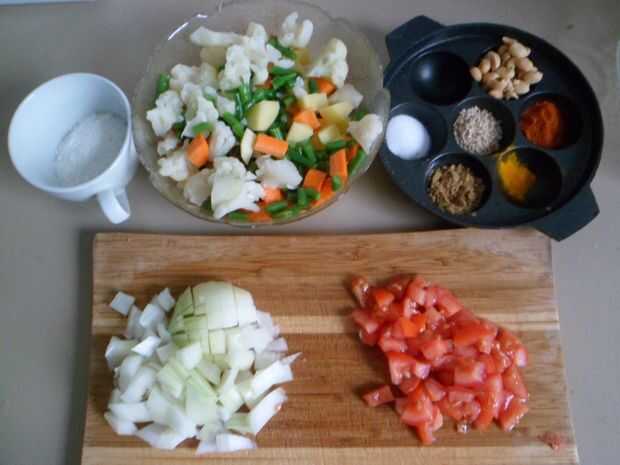 -Curry de vegetales mixto es una combinación de variedad de verduras. Es muy nutritivo y saludable. Plato es colorido y tentadora para comer.