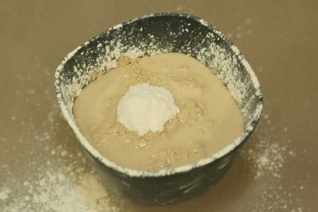 Gradualmente esparcir puñados de yeso en el recipiente. Seguir agregando yeso hasta una pequeña isla de seco formas de yeso en la superficie y se niega a hundirse.