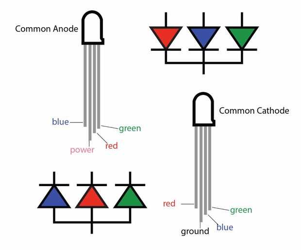 RGB significa rojo, verde y azul, hay tres LEDs de cada uno de estos colores en un LED RGB. Hay dos tipos de LEDs RGB para tener en cuenta, cátodo común (tierra) y el ánodo común (alimentación). Un LED es un diodo, es decir flujos de electricidad a través de él una forma, no se encenderá si conectado incorrectamente. Cuando un LED es masa común significa que todos los 3 canales comparten el cuarto cable que debe conectarse a tierra (- lado de la batería). Si poder común, lo mismo excepto el plomo común está conectado a alimentación (+ de la pila). Una vez que sepa si tiene puntos en común o corriente, también sabes que manera de coser su batería. Para averiguar qué tiene, puede hacer una prueba rápida.