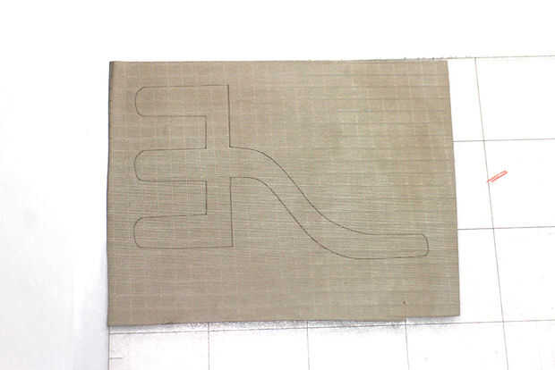 Importar lo archivos JPEG previamente descargado en a estudio de la silueta. Utilice la herramienta trace para seleccionar y trazar el contorno de cada imagen. Después de completar el trazado, cambie a la configuración de corte y hacer algunas pruebas con algunos presets. Tarjetas deberían funcionar bien. Cuando esté listo, corta todo el diseño de parte superior e inferior. Verifique con su patrón de pulsera una última vez, asegurándose de que el soporte de la batería con golpea la parte superior e inferior y los tres canales del patrón superior están lo suficientemente cercanos al borde,. 25" o menos. Si todo se ve bien, pasemos a la tela conductora!
