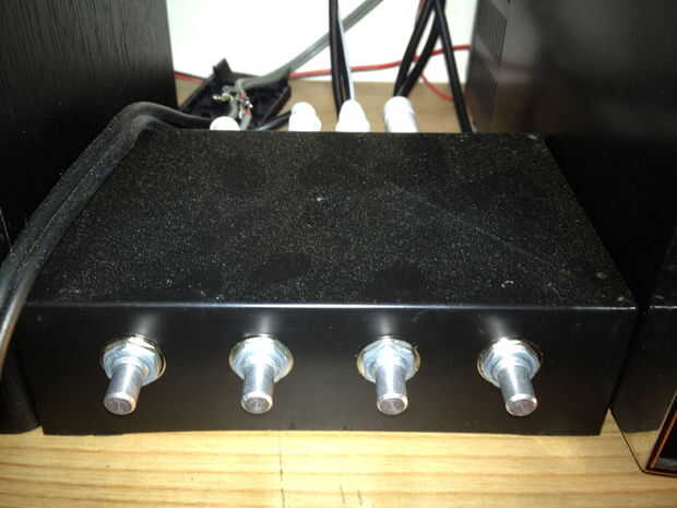 había querido un pequeño mezclador de audio durante mucho tiempo pero eran a caros así que construí mi propio. Sólo puse un control de volumen en dos de las cuatro entradas pero puede añadirlos a la salida o los otros dos si quieres. CUBRIR el fondo