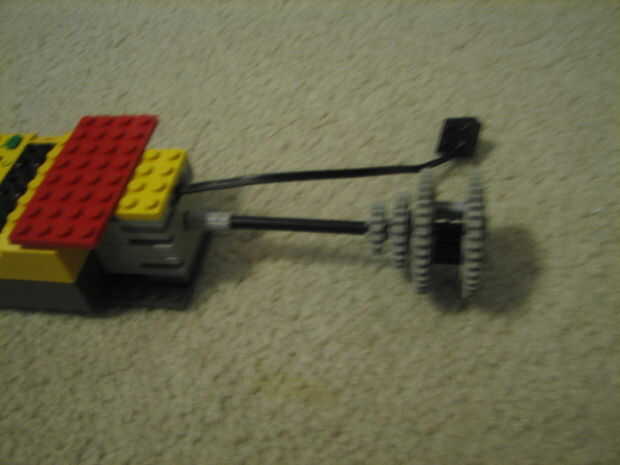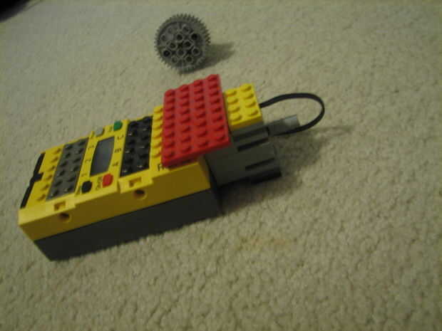 15. tome tu placa de 6 x 12 y atacar a la parte inferior del ladrillo rcx, de modo que se alcanza y se conecta a las placas de 2 x dos 4 en la parte inferior del motor. ASEGÚRESE DE QUE NO SE FIJE NI LLEGAR ALGUNO MÁS.