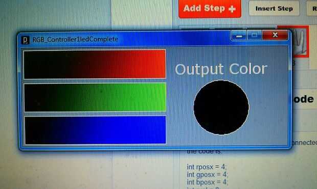 Esta dibuja un círculo cual visualiza el color mezclado que es está siendo emitido a Arduino