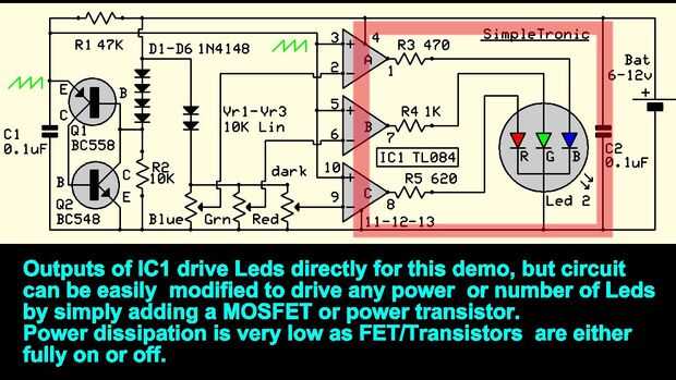 Simple estado de ánimo de LED RGB color potenciómetro sin microcontrolador