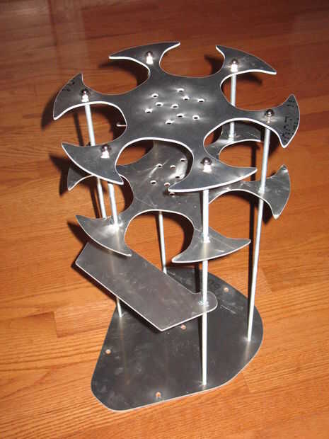 Para la base del sistema portátil, usé un óvalo en forma de placa que he comprado de tienda de artesanía de Michael. Esto fue rociado con pintura negra texturizada. La base proporciona una base estable.