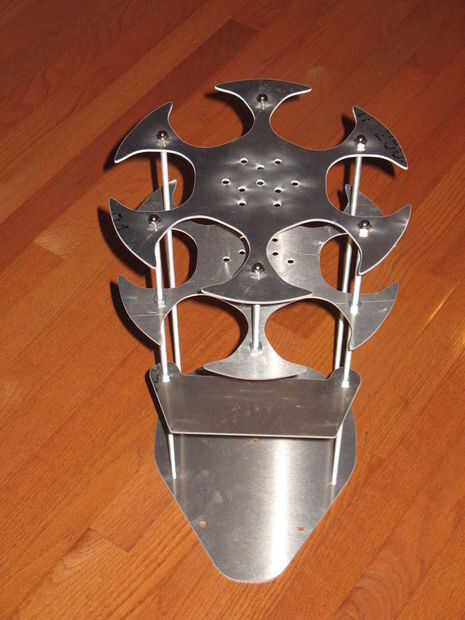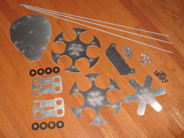 Cortar las varillas roscadas a 4 longitudes iguales (longitud dependiendo de las botellas y la altura de la máquina deseada). También, cortar seis piezas roscadas utilizar para unir los soportes superiores.