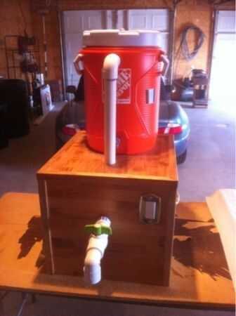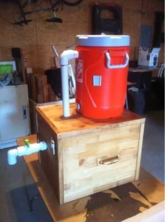 Por encargo de caja con un galón 5 Igloo nevera en la parte superior. NUEVO InSinkErator Evolution compacta basura en la caja de madera ($179 en Home Depot). Todo sobre este vino de Home Depot.