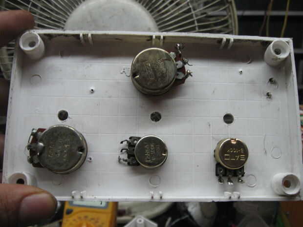 En el cuadro 11 podrás ver la parte posterior de la caja del PVC donde todas los resistores variables se fijan a la caja y ahora están listos para ser soldadas a las conexiones respectivas.
