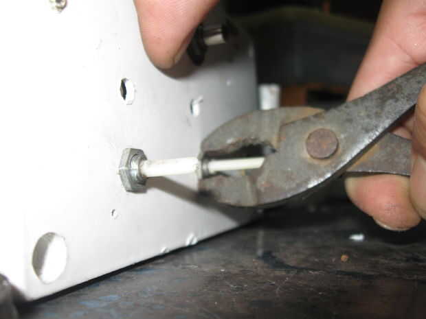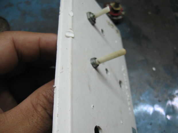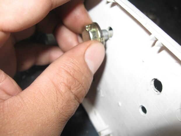Ahora es un proceso simple de colocar los resistores variables e interruptores en sus respectivos lugares y les espigado, siga por favor las fotos (6,7,8,9). Es muy simple solo atornillar los pernos de los resistores variables con una nariz o unas pinzas de mono la parte delantera de la caja del PVC.