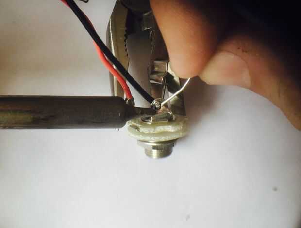 Un cada uno de los 3 jack de 1/4, cable de Naciones Unidas de soldarle (negro) a la conexión de la "manga" (manga), cable (rojo) en las Naciones Unidas y a la conexión de la punta, como se muestra en la fotos.