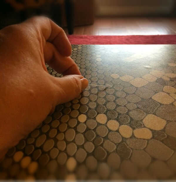 Cuando suavizado en las burbujas del papel de contacto son inevitables. Buscar esas molestas burbujas y utilice la aguja para pinchar los agujeros pequeños en ellos. Luego use la escobilla de goma para suavizar la burbuja.
