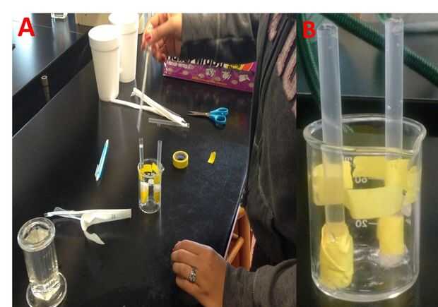 Abrigo de Saran y cinta un extremo en ambos popotes para que al verter el agar en la paja no saldrá otro extremo. Con cinta adhesiva la paja en el interior de un vaso de precipitados para que están de pie hacia arriba. Usar pipeta Vierta el agar en pajas y solidificación. Toma aproximadamente 20 minutos para agar para convertirse en sólidos.