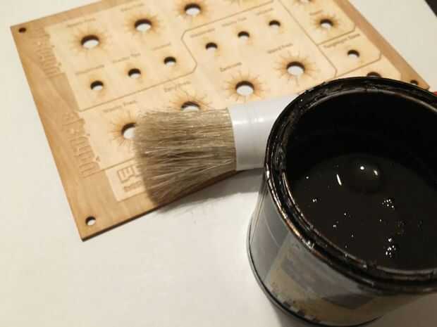 Nadat ik het paneel gegraveerd tenía, heb ik er voor gekozen om het iets multiplex donkerder te lakken om een wat strakkere uitstraling te creëren.