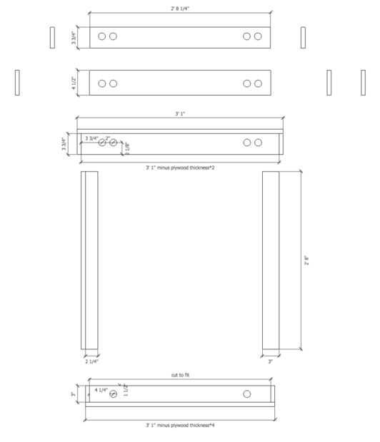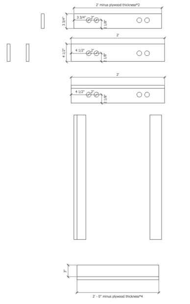 Muchas de las partes tienen sólo una dimensión. Esto es porque el segundo es poco importante, declarado algún lugar más, o en base fuera el grueso de la madera contrachapada. Aprendí esto la tenía forma: 18mm, 23/32, un 3/4 puede estar cerca pero pequeños errores se suman.