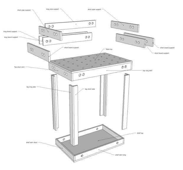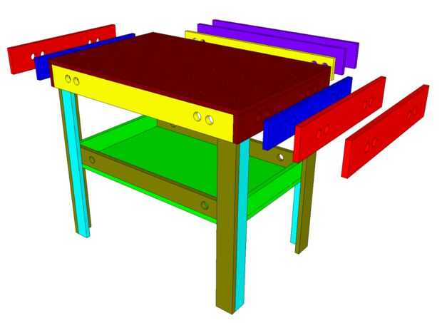 -Las piezas azul y la una sola pieza amarillo corto son los soportes para tubos. Aquí se muestran pero están instalados debajo de la mesa para mantener tuberías paralelas a la parte superior.